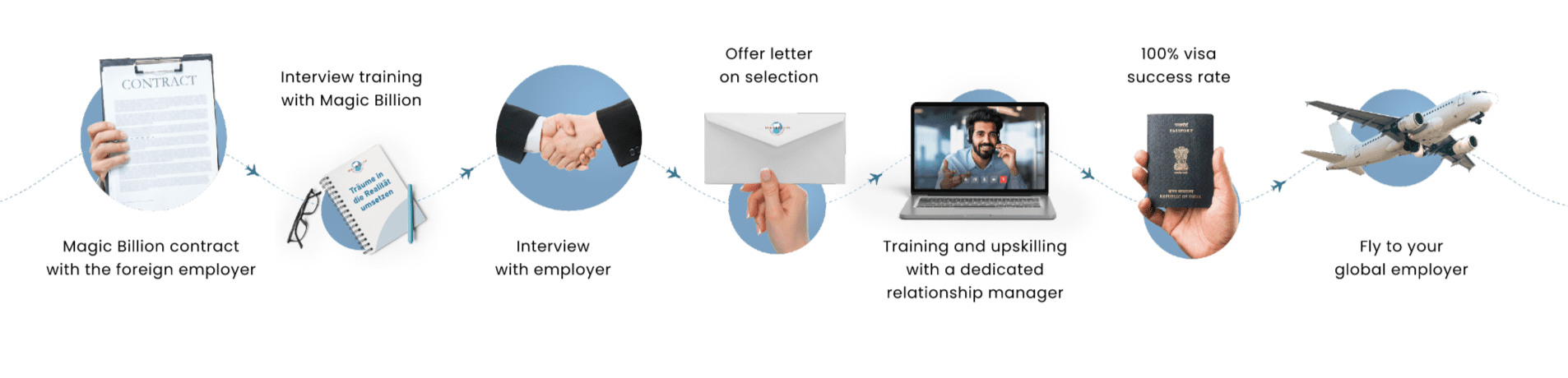 IndiaWorks GmbH, our Germany entity, helps take care of everything on the ground—from finding the right jobs to supporting candidates after they arrive. Backed by Magic Billion, we make global hiring seamless for candidates and employers.