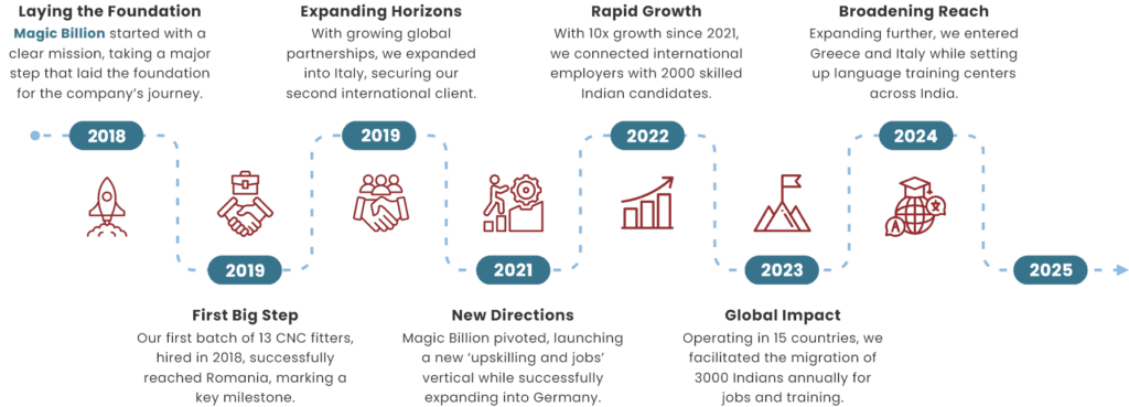Magic Billion helps global companies hire trained, motivated Indian professionals across industries. Backed by years of experience, robust infrastructure, and partnerships with Indian and foreign governments, we offer end-to-end recruitment solutions that save you time, reduce costs, and ensure long-term workforce success.